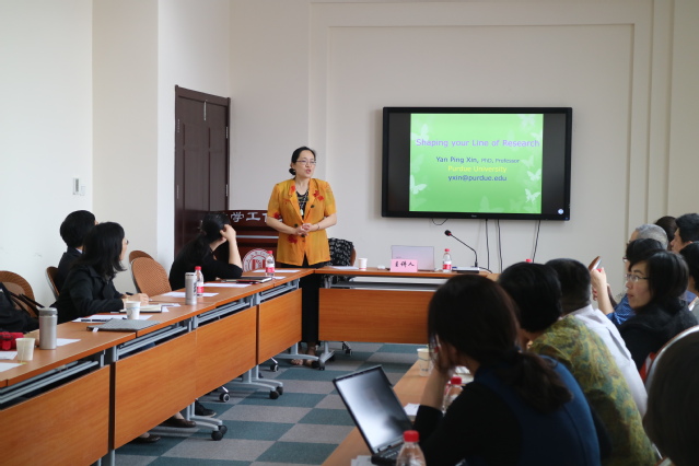 忻燕萍教授是美国普渡大学(Purdue University)教育研究系终身教授,美国国家自然科学基金会研究项目负责人,先后在国际级期刊发表学术论文60多篇,主持多项美国自然科学基金项目。 在“如何定位学术研究路线”的讲座中,忻教授介绍了自己在国内和美国的教学、研究的工作经历,并以自己开展的科研项目为例,展现了她在数学和教育等跨学科领域学术研究的杰出成就和教学水平。她提出,设定正确的学术研究方向,需要十分清晰地了解自己所研究领域的体系框架和具体内容,并明确自己的研究内容在研究领域体系所处的位置和贡献度。为了进一步帮助教师们明确自己的学术研究方向,忻燕萍教授让在座的教师用思维导图描绘了自己所在研究领域的切入点,来自于不同学科背景的教师交流了各自的学术研究路线。在“如何写好论文”的教学工作坊中,忻燕萍教授通过从如何撰写论文的概述介绍、研究目标、文献综述、研究方法、定量分析、成果与结论以及局限性和未来的研究方向等方面,具体介绍了撰写好一篇论文的基本要素,提出了大家在写论文时可能会产生的通病,并为大家如何成功地撰写论文给出了中肯的意见和建议。在座的老师们无不深切地感受到忻教授从一名普通的教师成长为美国国家自然科学基金项目评审专家,美国多家顶级期刊特邀主编和编委为之付出的辛勤努力。在相互交流中,教师们在如何设定自己学术研究方向有了更明确的定位,并在如何撰写论文有了更深入的心得。