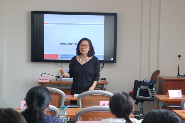 本次举办的教师英语授课研修班特邀了上海交通大学教师英语授课培训师Donna Wong女士来我校主讲,以提高教师的英语授课能力与技巧、提升英语交流水平为目标,采取小班、短期集中的培训模式,在以学生为中心的主动式学习为教学模型的基础上,分别学习了“教学目标”“教学活动”以及“教学反馈与评价”三大模块,系统性地学习与课程设计的方法、学习目标的确立、有效的评价、教学的创造力,共同探讨了授课、分组学习、教学辩论、教学案例研究以及头脑风暴等教学方法。在每次课程中,还穿插了相关英语教学理念与方法的问题讨论交流的环节。通过研修,帮助教师们更好地适应了英语授课语言转换带来的课堂环境、教学方法、教学思维等相应转换,并进一步提高了英语语言运用能力,增强了教师英语授课的信心。